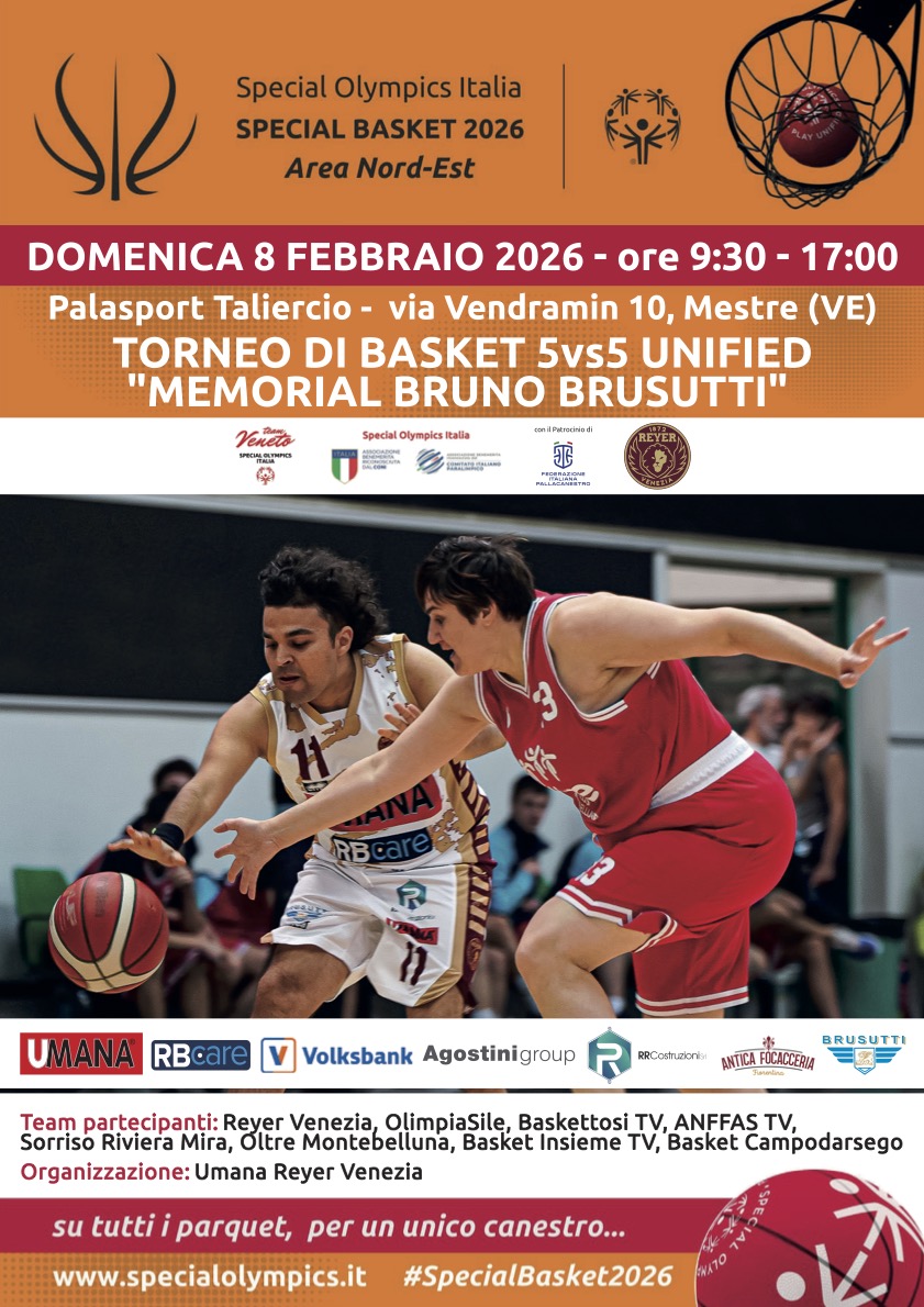 Domenica 8 febbraio 2026, il Palasport Taliercio aprirà le porte per un evento straordinario all'insegna dello sport e dell'inclusione. L'Umana Reyer è orgogliosa di organizzare la prima giornata di gare dell'Area Nord-Est del torneo Special Basket 2026, dedicato alla memoria di Bruno Brusutti.