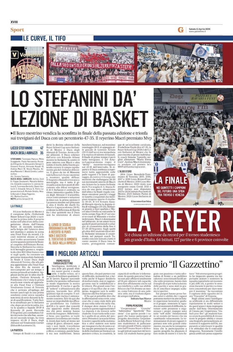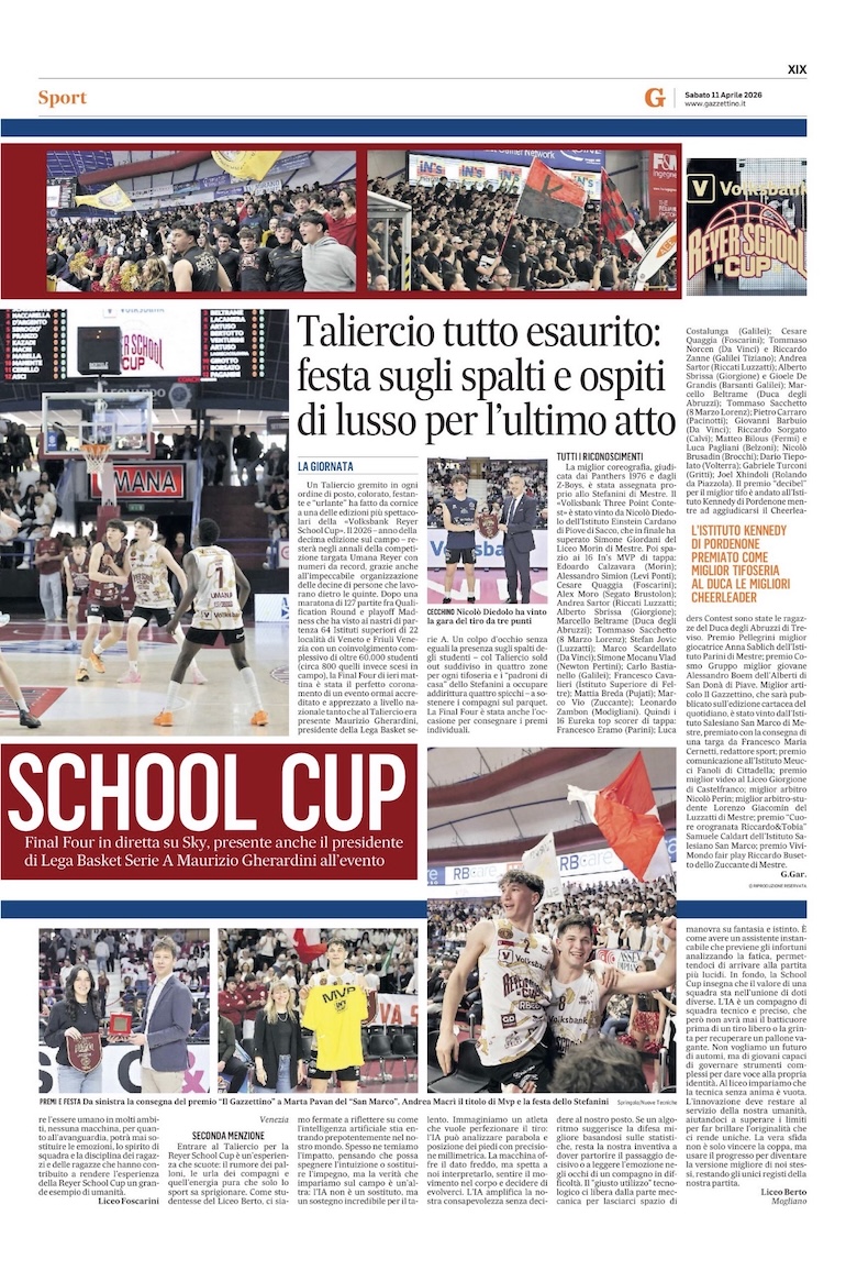 In un panorama sportivo sempre più orientato alla narrazione e alla connessione con il pubblico, la Volksbank Reyer School Cup dimostra come un progetto scolastico possa diventare un punto di riferimento nazionale, capace di coinvolgere media, community e nuove piattaforme. Non solo un torneo, ma un’esperienza condivisa che parla il linguaggio di tutte le generazioni e ne valorizza il protagonismo, dentro e fuori dal campo.